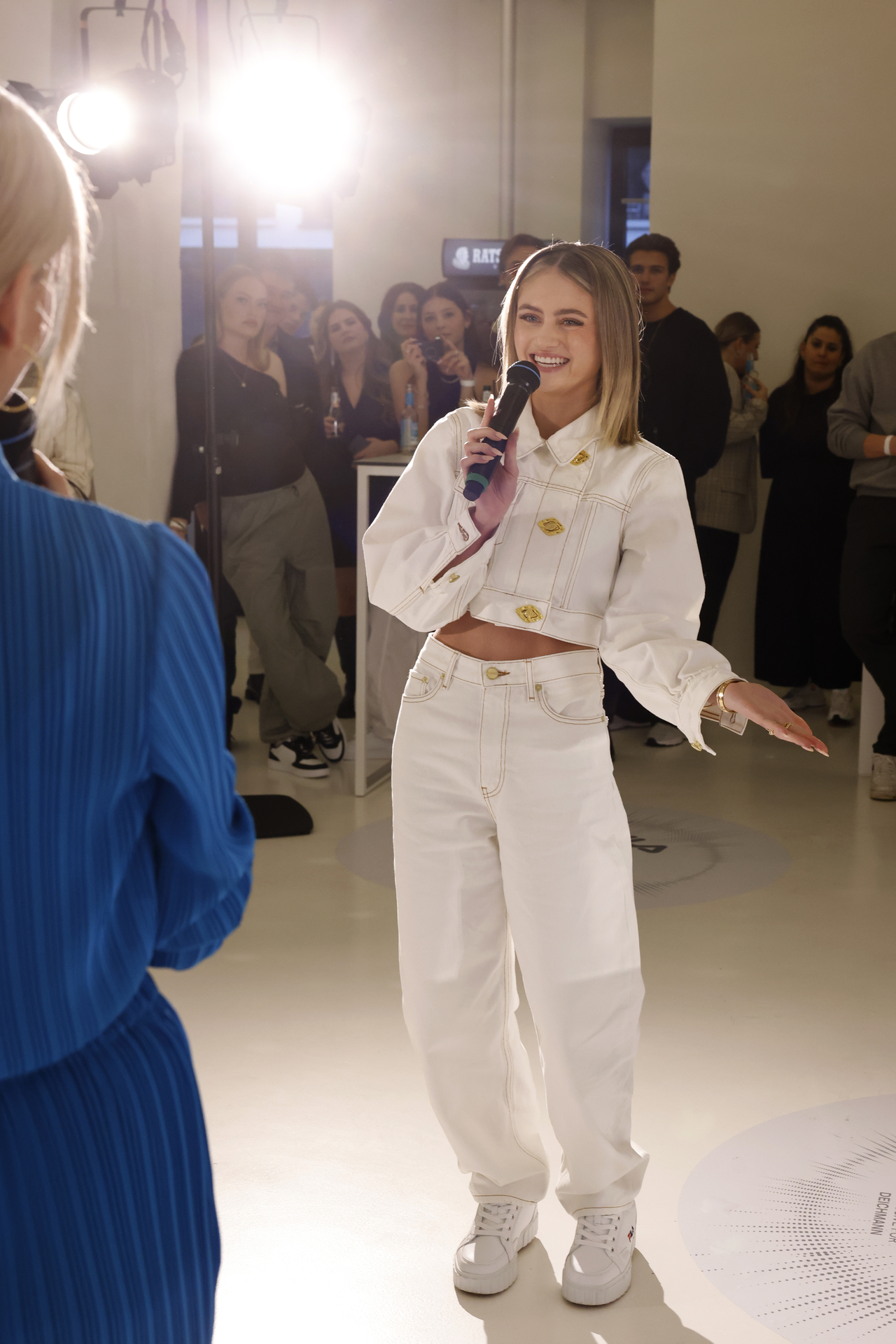Auf dem „weißen Teppich“ vor der Sneakerwall fanden sich am Freitag in der Hamburger Hafencity prominente Gesichter der Fashionszene ein. Stars wie Elena Carrière, Toni Mahfud, Cheyenne Ochsenknecht, Alex Mariah Peter, Soulin Omar, Janin Ullmann, Alena Gerber und die Influencerin „Videozeugs“ feierten mit Leni den Launch ihrer zweiten FILA-Kampagne für DEICHMANN, die aktuell europaweit in den Filialen und Onlineshops läuft. Präsentiert wurden Lenis Favorite Styles in Form einer spektakulären Tanzshow. Sechs Tänzerinnen ließen durch einen Mix aus Catwalk und Urban Streetdance Moves, unter der choreographischen Leitung von Karen Schweiger, das Kampagnenmotto „On the Move“ lebendig werden.