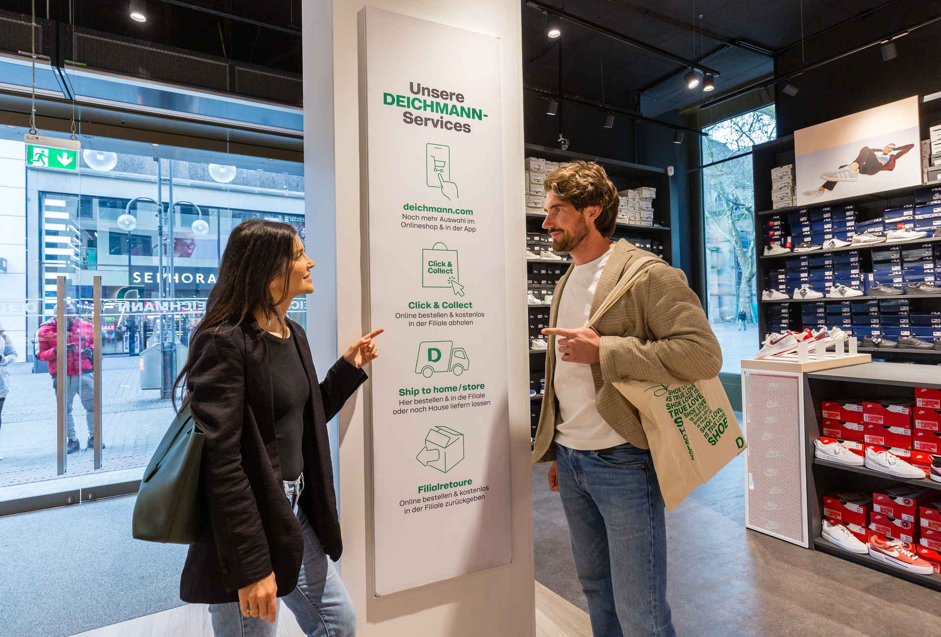 Customer in front of the DEICHMANN store at Limbecker Platz in Essen. Photo credit: DEICHMANN SE, Rüdiger Fessel