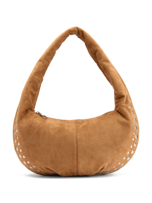 Weekend style: le hobo bag in suede caramello o mocha mousse si sposano con maglioni oversize, denim flare, cappotti teddy e stivaletti con tacco.